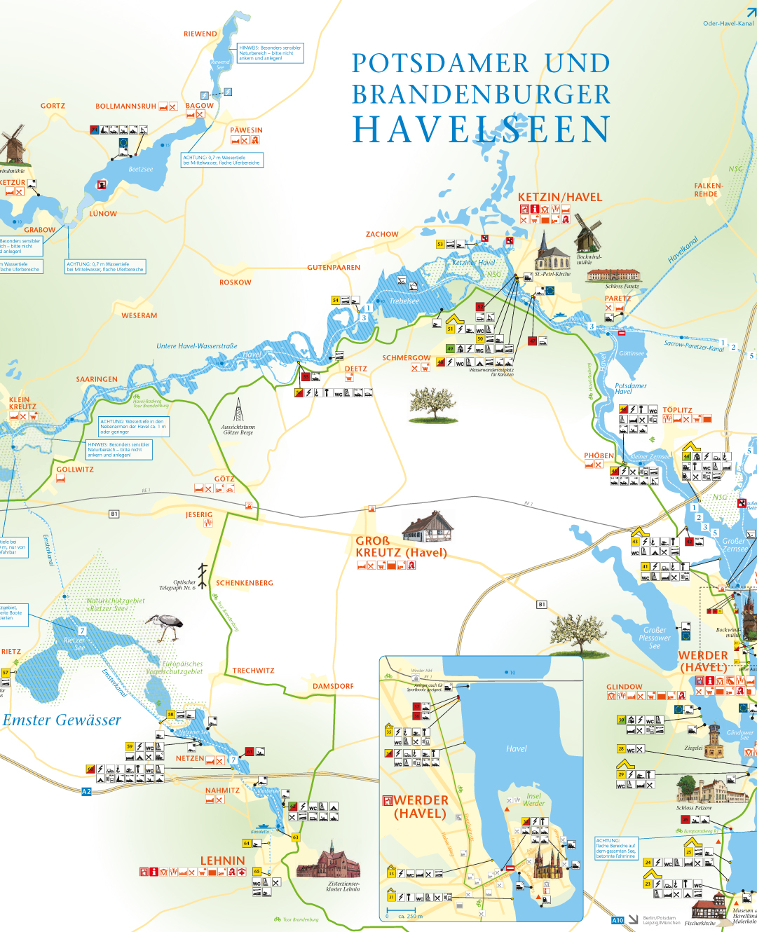 Leinen los und Schiff ahoi – das Revier der „Potsdamer und Brandenburger Havelseen“ ist Teil des „Blauen Paradieses“, Europas größtem zusammenhängenden Wassersportrevier zwischen Elbe und Oder, Ostsee und dem Spreewald. Und Werder ist mittendrin. Auf einer Gesamtlänge von rund 180 Kilometern bietet der Flusslauf der Havel mit mehr als 40 Seen, Kanälen und Havelarmen wunderschöne Möglichkeiten für einen Urlaub mit dem Boot. Ob unter Segeln, an Bord eines Motorbootes oder mit dem Kanu dem Wasser ganz nah – hier kann jeder seine individuelle Bootstour genießen.